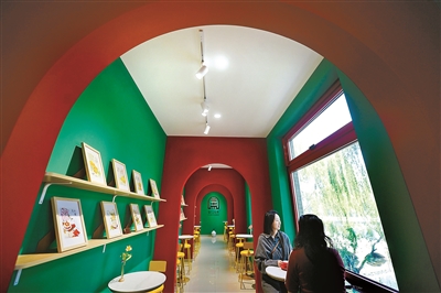 当你忍不住点杯咖啡落座窗前,瞬间会被窗外的景致锁住心神,这一刻,万宁桥的碧波垂柳、火神庙的飞阁重檐、什刹海的游人如织相映成趣。“设计师巧妙运用‘框景’手法,在改造时将玻璃窗加宽变为‘取景器’,让游客通过新视角来观赏中轴线以及大运河的美景。”地安门主题邮局局长门桂菊告诉北青报记者,改造前邮局的二层是邮取包裹及办公区。“地安门邮局是个百年邮驿,随着快递业的迅猛发展,邮局的作用已经逐渐弱化,此次改造我们将邮政服务、文创体验及咖啡轻食深度融合,没想到一经推出就成了新的网红打卡地。”门桂菊开心地说。